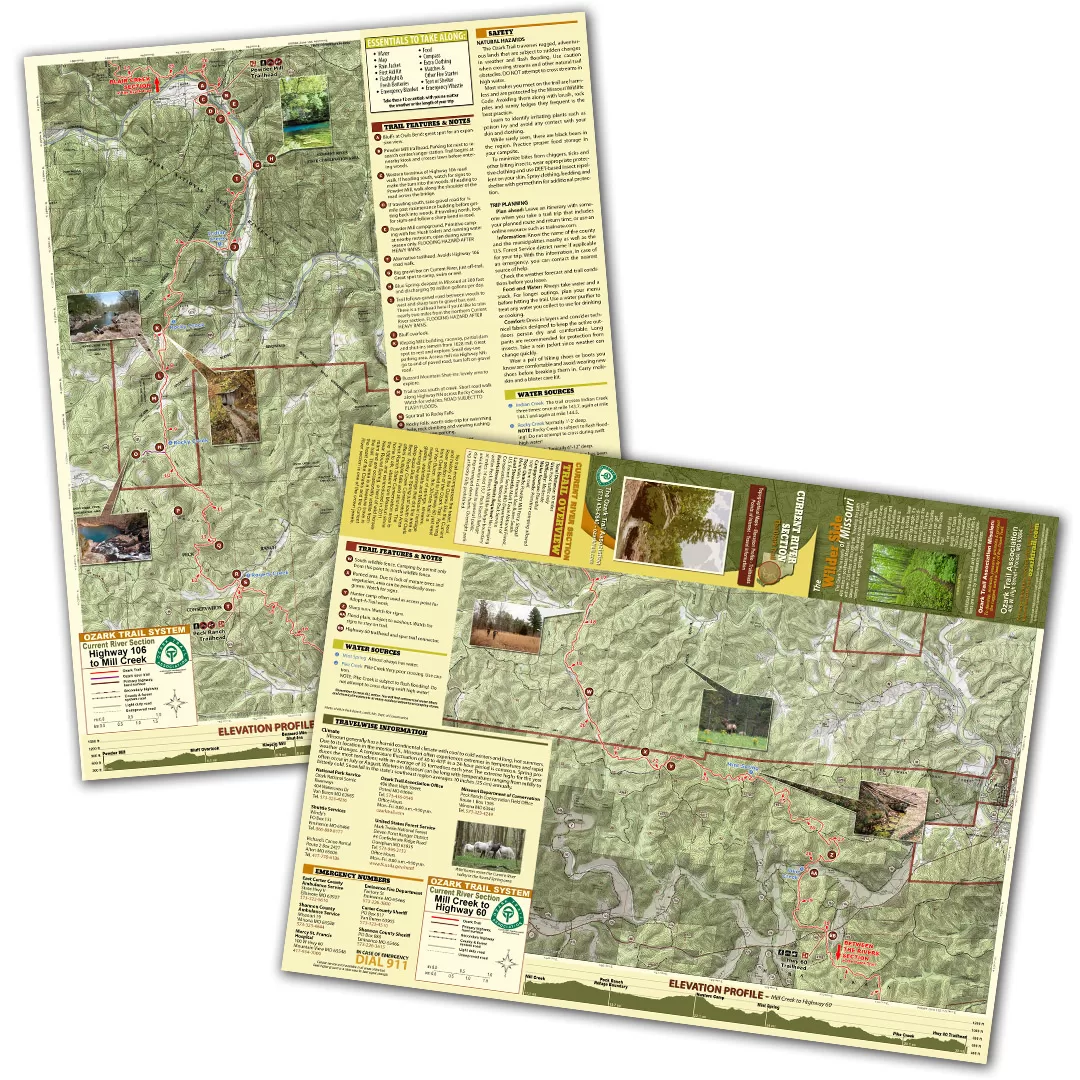 A good trail and a good map go hand-in-hand, and we’ve mapped out each section of the Ozark Trail for you! Our topographical section maps include elevation profiles, trailheads, points of interest, traveler information and more. These high-quality maps are printed on waterproof and tear-resistant paper.