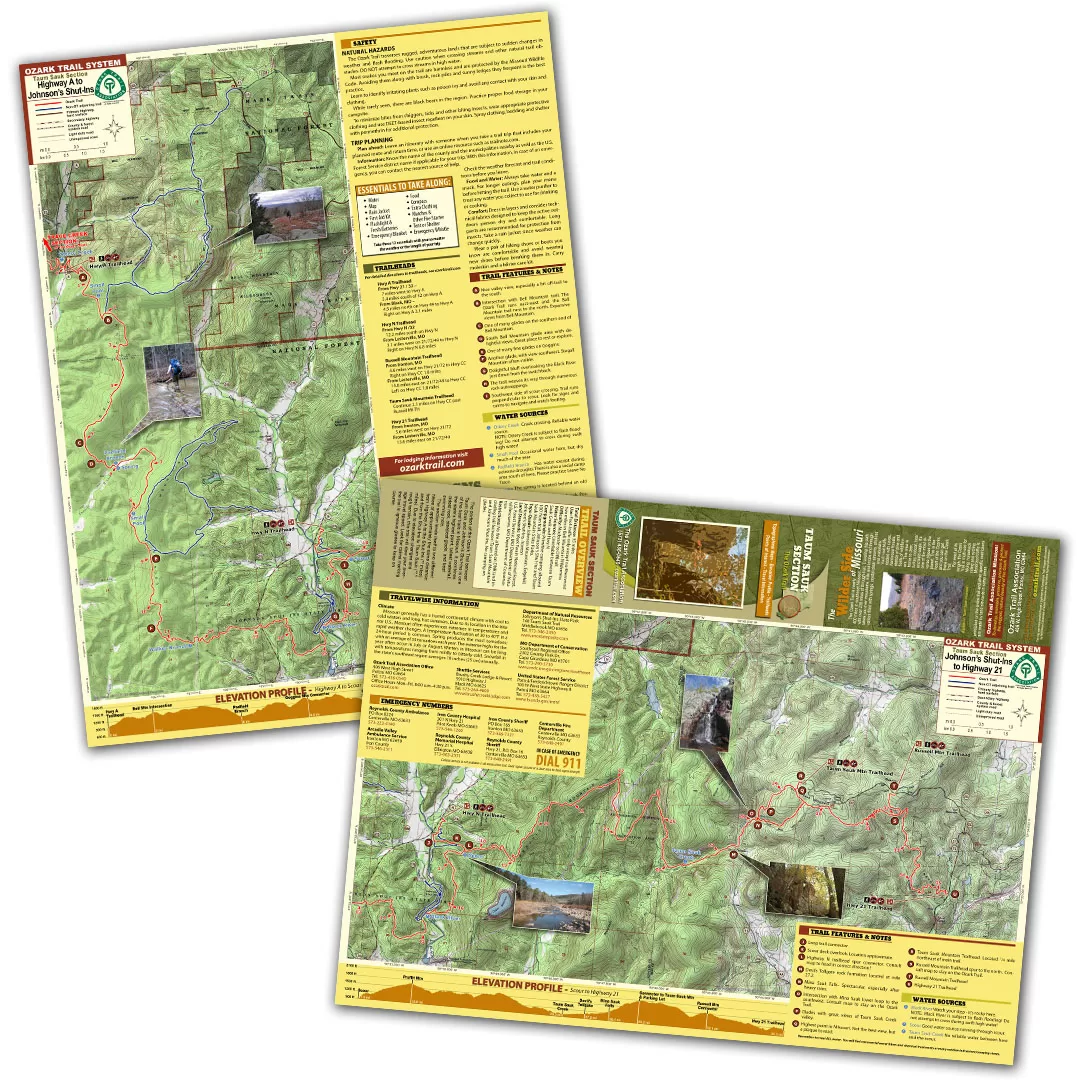 A good trail and a good map go hand-in-hand, and we’ve mapped out each section of the Ozark Trail for you! Our topographical section maps include elevation profiles, trailheads, points of interest, traveler information and more. These high-quality maps are printed on waterproof and tear-resistant paper.